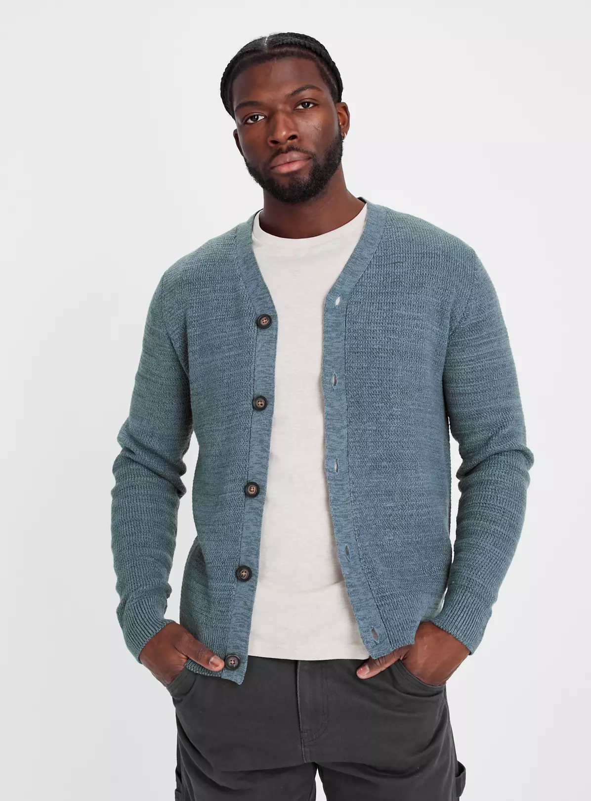 Layer up in style this season with our textured cardigan. In a cool blue shade, it features value fastening for a snuggly fit. For the ultimate look, team it with a plain t-shirt and denim jeans.