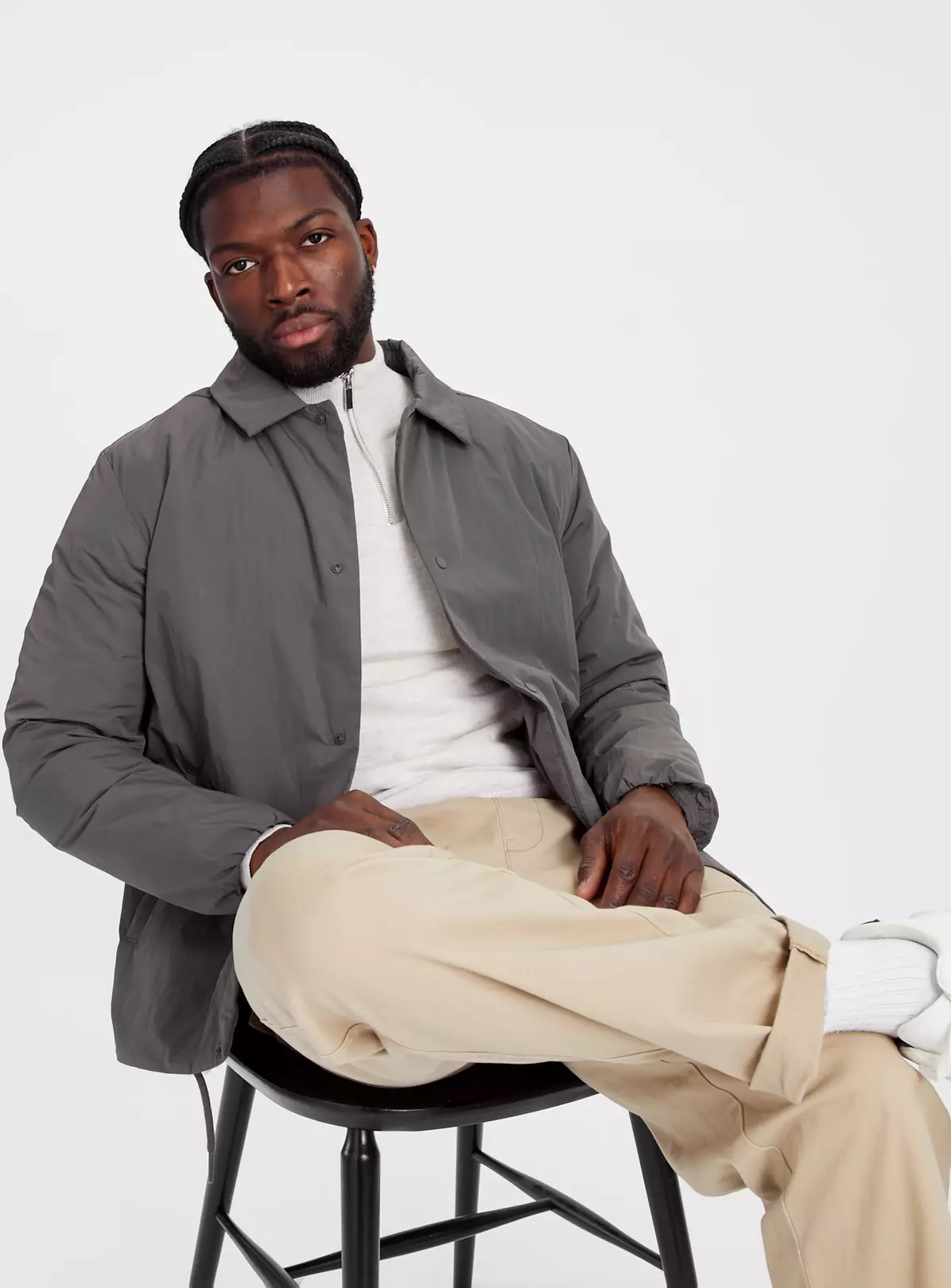 Update your outerwear wardrobe with our charcoal coach jacket. It features a collar and comes in a classic coach design, perfect for adding smart-style to your outfits. Throw it over a cotton shirt and team with a pair of tailored trousers for a staple workwear look.