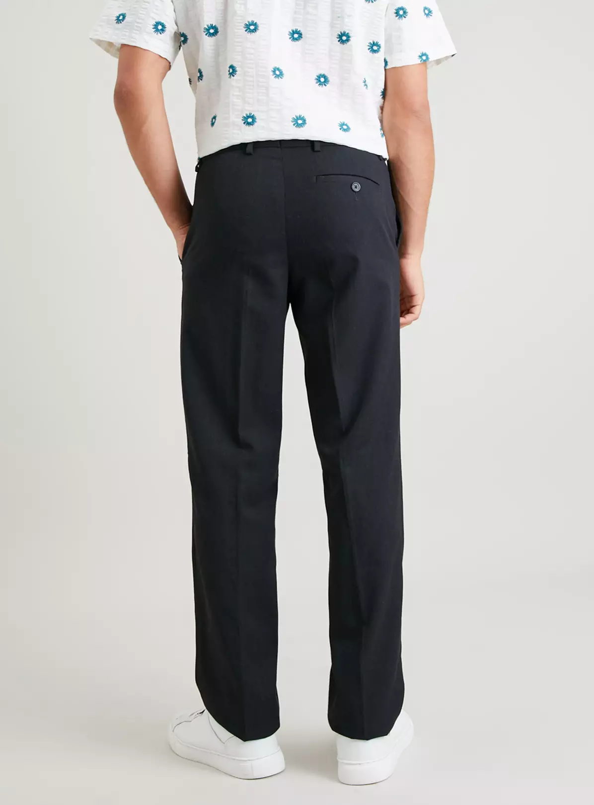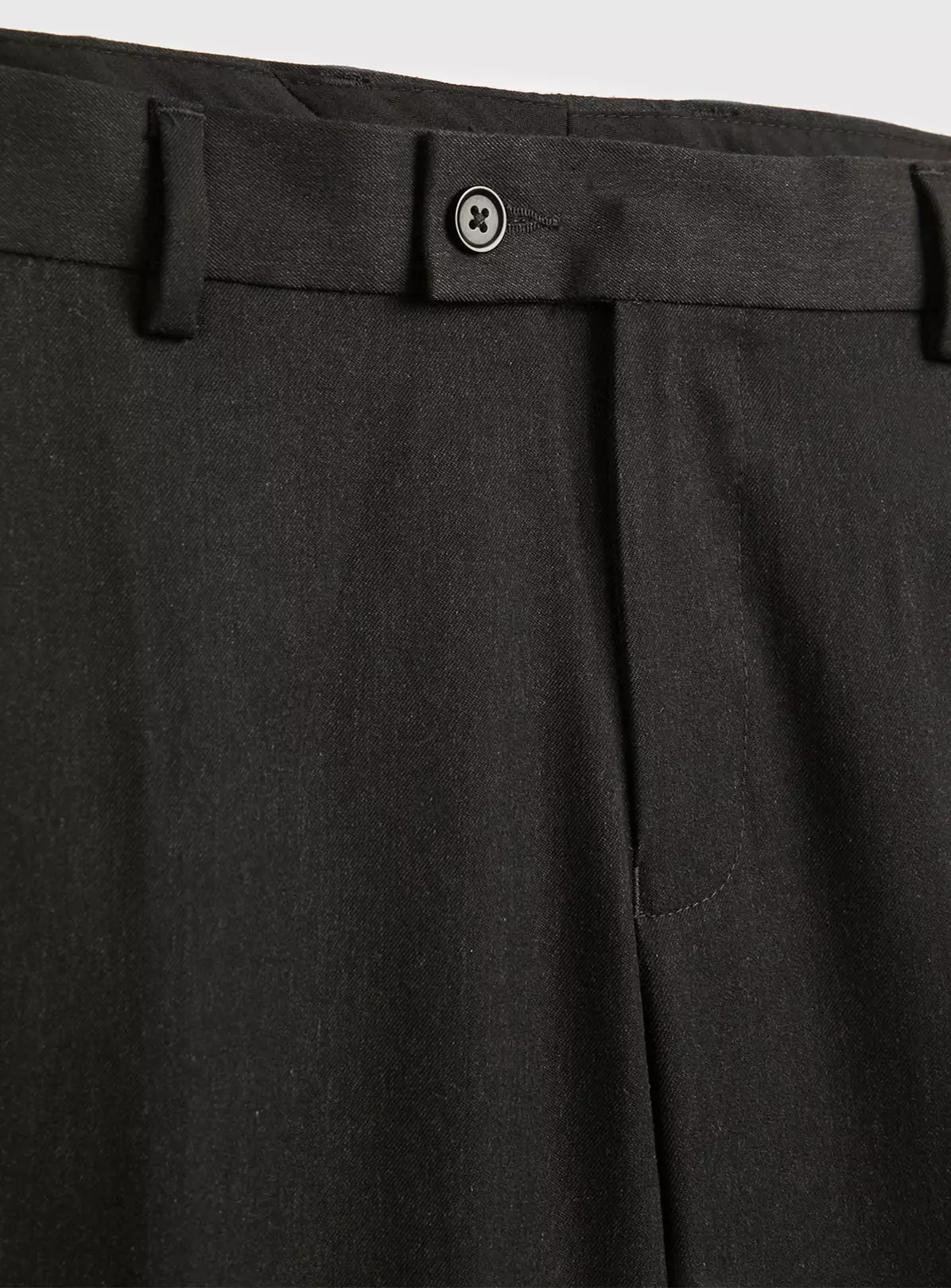 These charcoal grey gabardine fabric suit trousers with stretch come in a smart tailored finish. With a Teflon coating which repels water and water based stains, they are perfect for the office and for more formal special occasions.