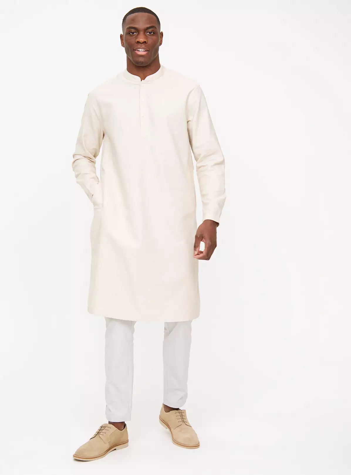In a textured design, our ecru kurta is ideal for Eid, weddings, and other events. It’s crafted from a cotton blend and features front value details. A comfortable option for formal and casual occasions.