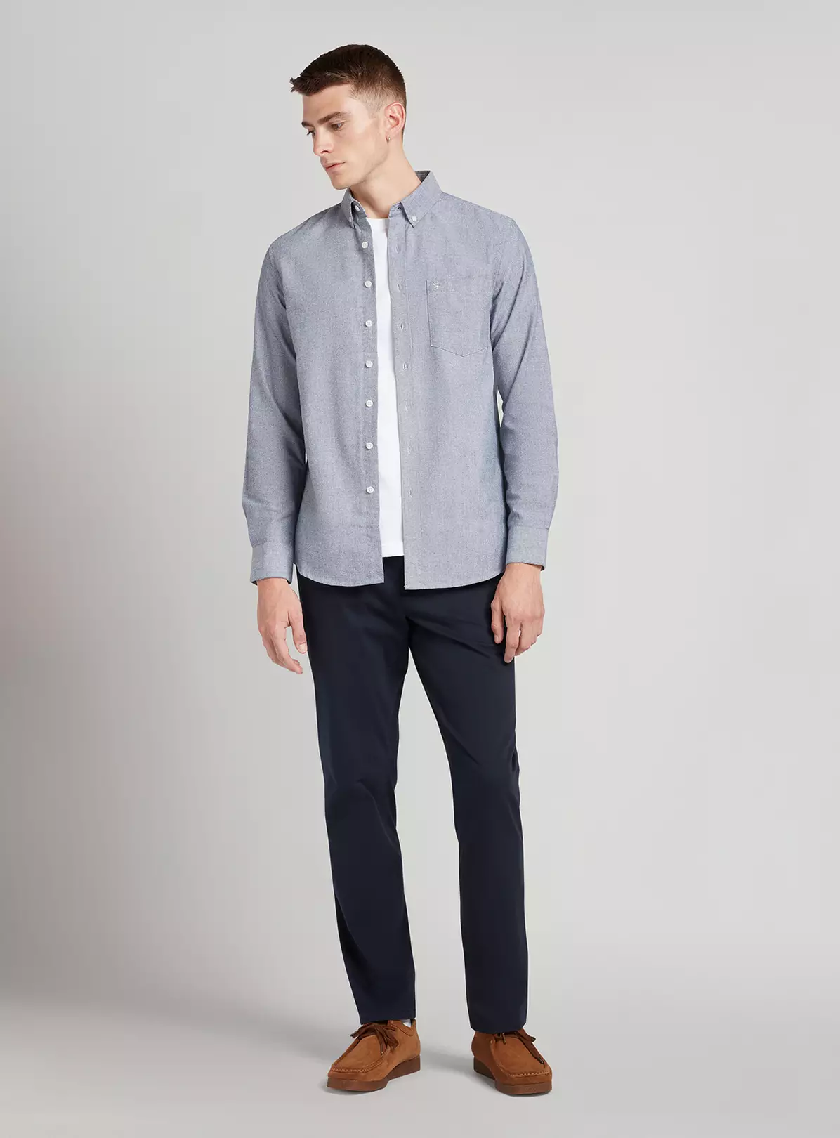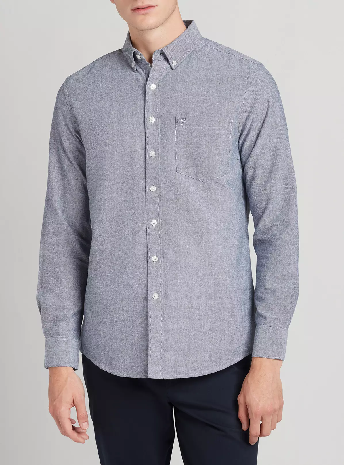 The iconic Farah Oxford Shirt. Embrace the smart casual look with this poly cotton shirt. The Drayton is cut in a Regular fit with a value down collar and has a chest pocket. Machine Washable.