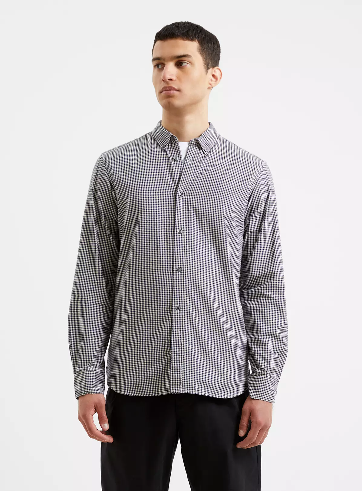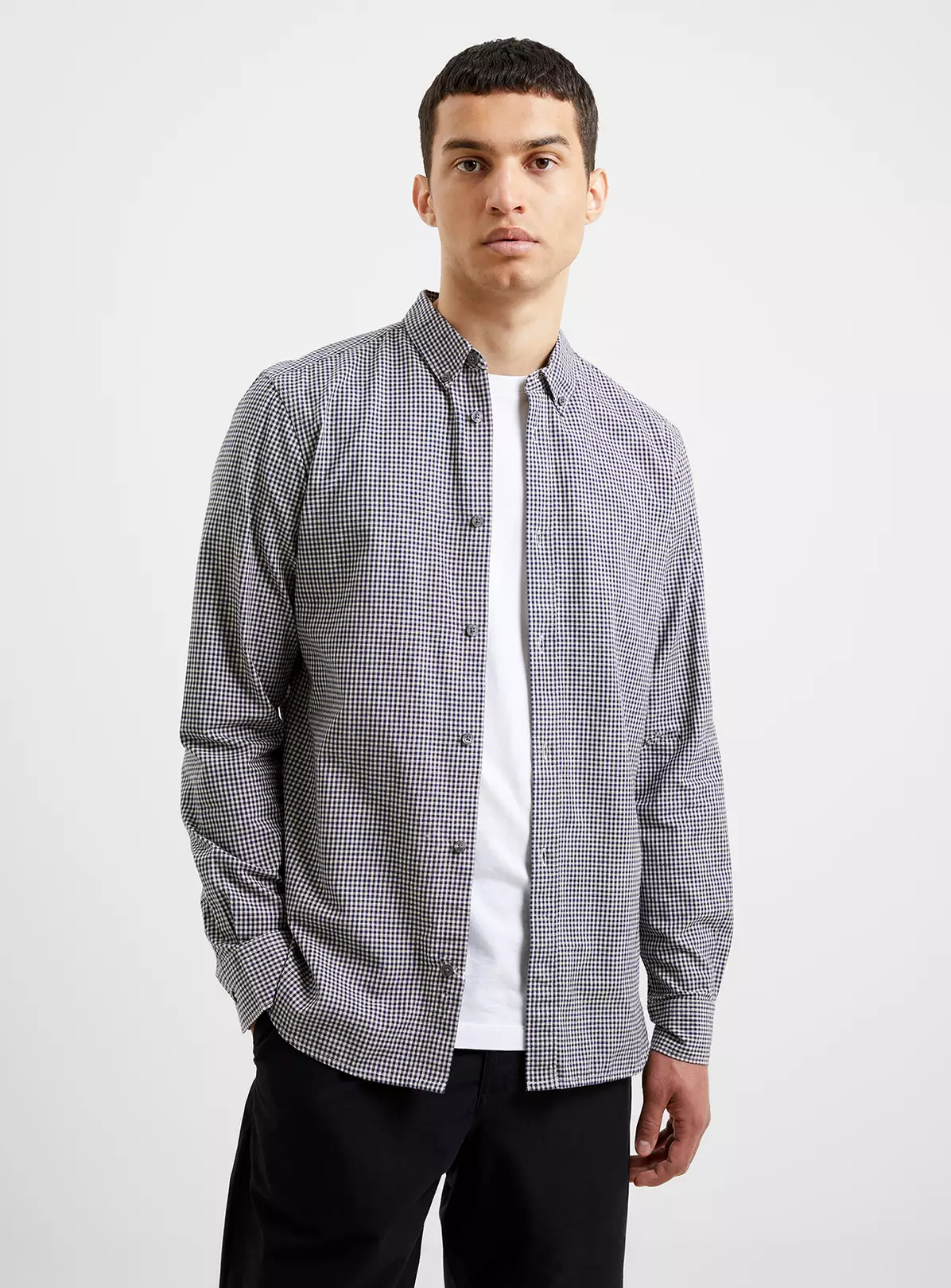 A timeless print takes over a traditional silhouette with our Gingham Long Sleeve Shirt. This lively style offers a monochrome must-have appearance, with the beloved gingham print accentuating its long sleeved silhouette, featuring a smart value-down collar, value-through fastening and rounded hem.