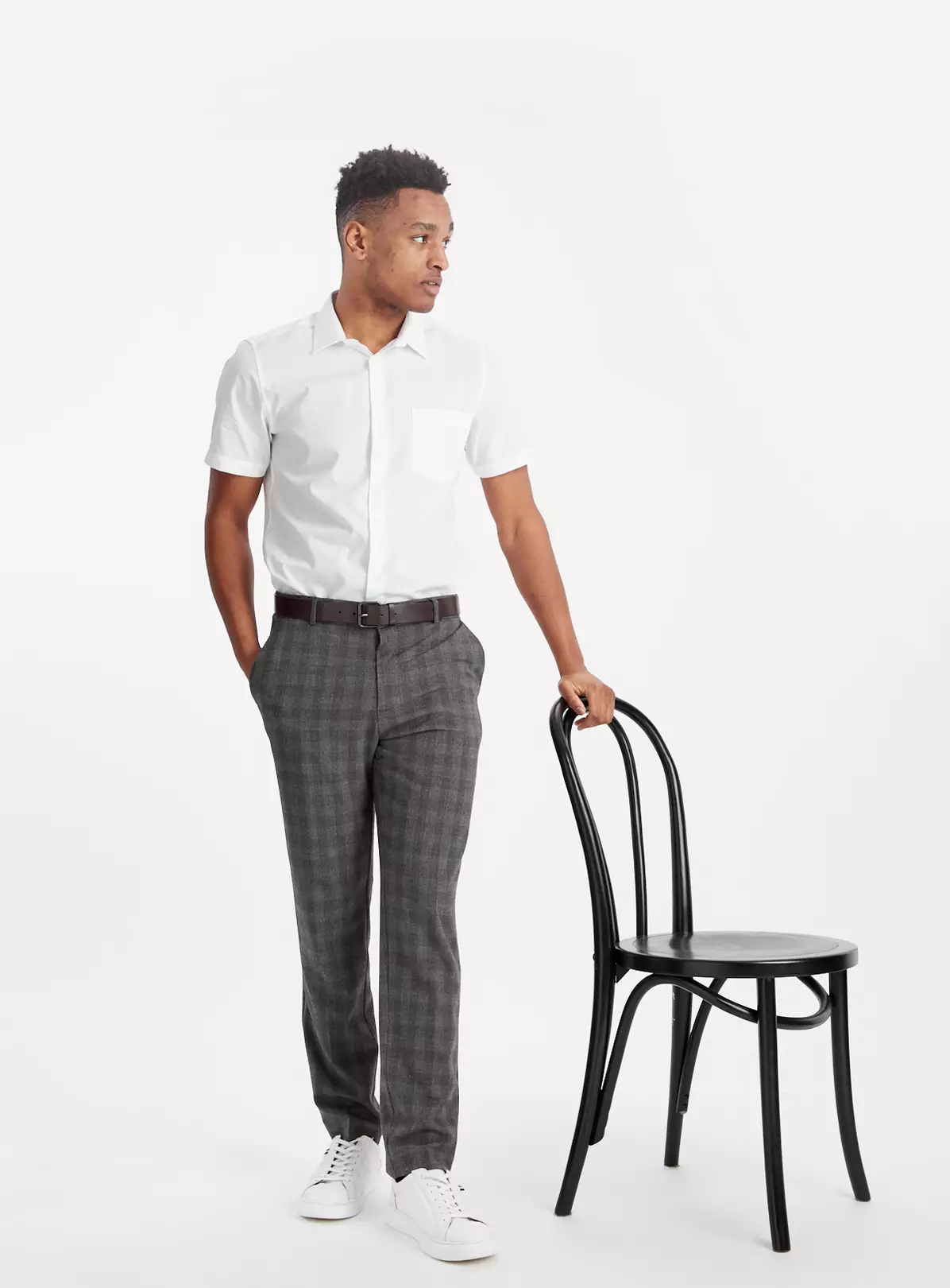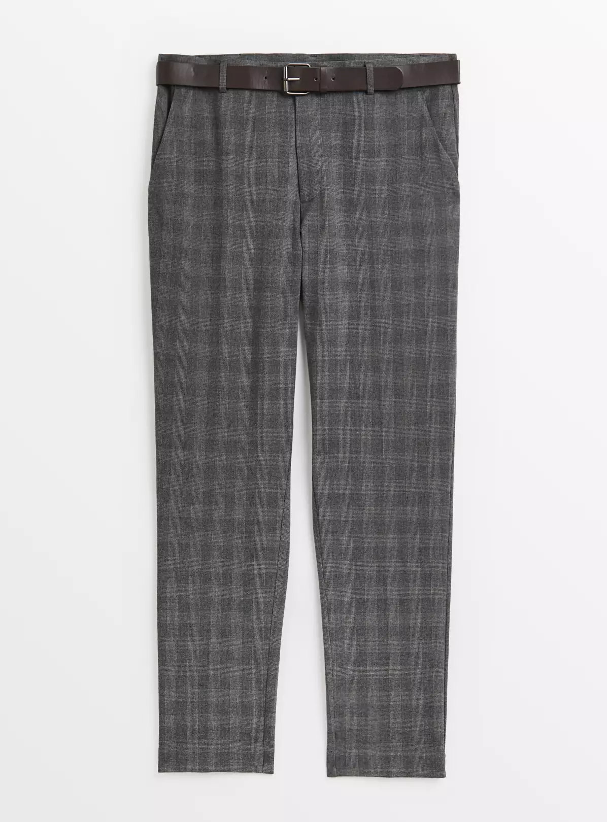 Refresh your formalwear wardrobe with our grey straight leg trousers. In a modern check design, they come with a grey belt to match. Finish your smart look by teaming them with a white value-through shirt and a pair of loafers.
