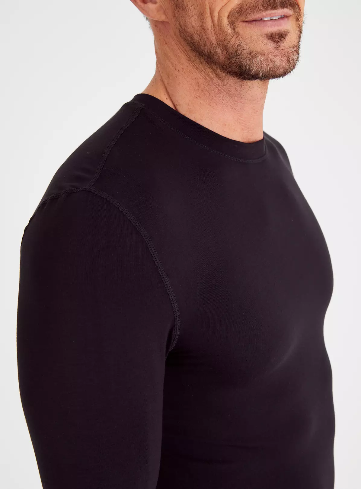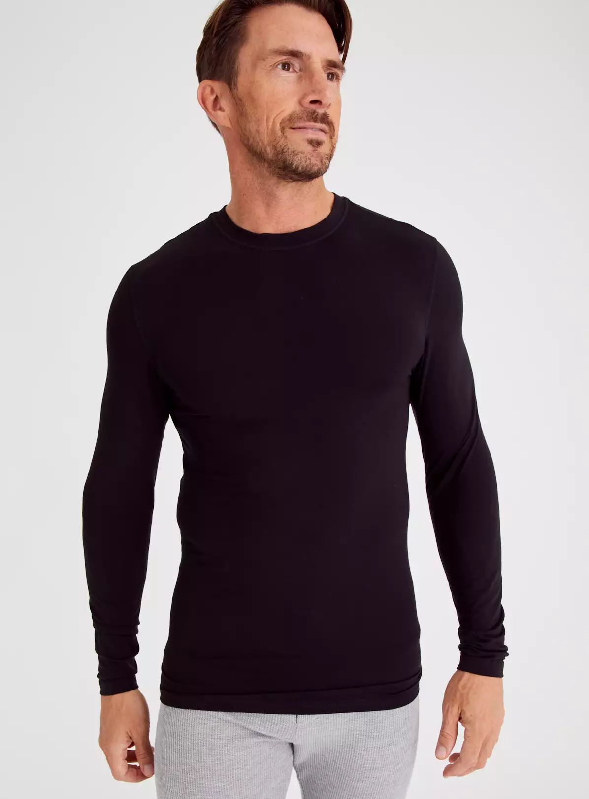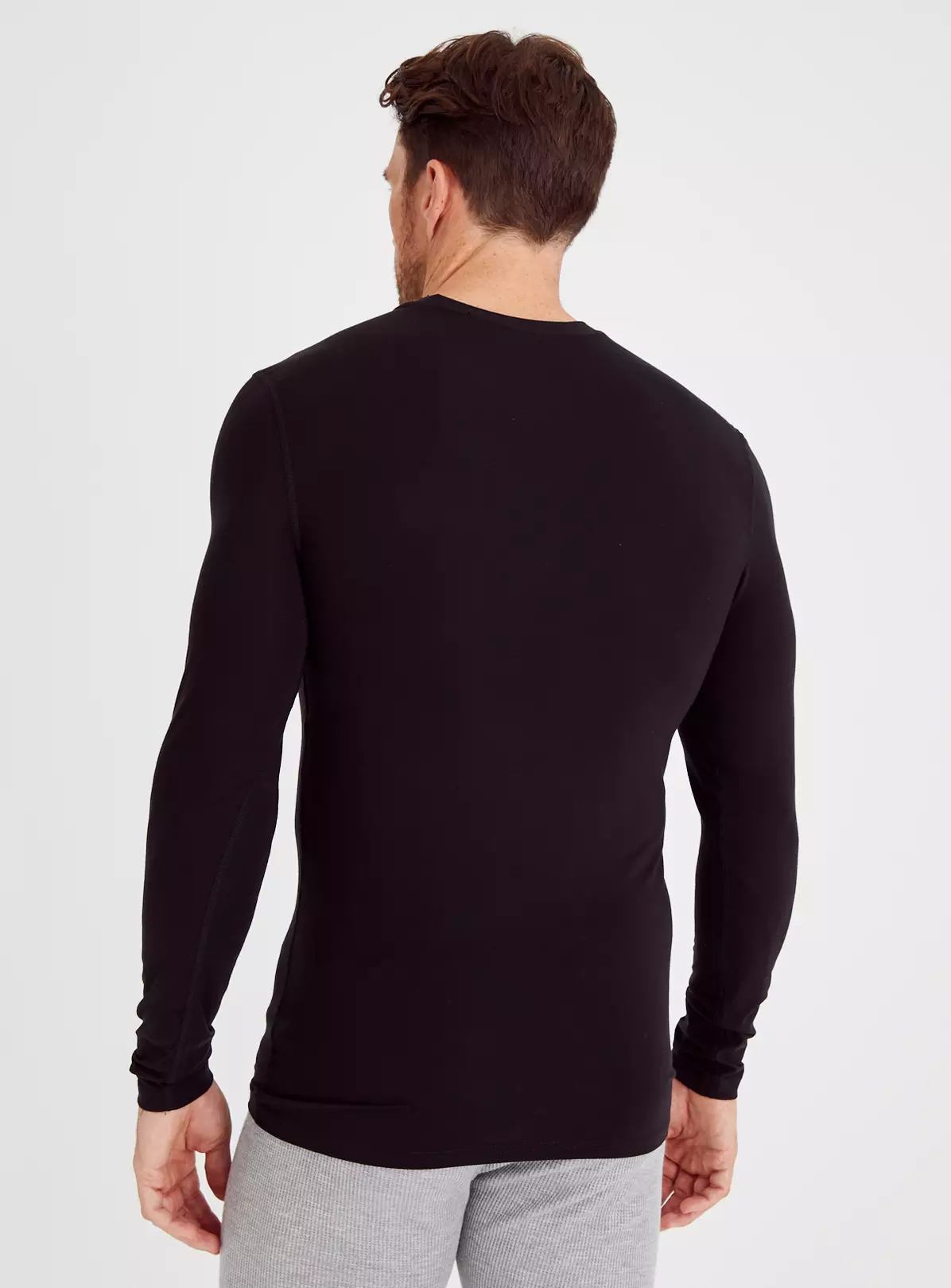 Embrace the chill with our Heat Active long sleeve thermal top in black. You’ll stay warm and stylish with its extra cosy design and comfy crew neckline. Perfect for staying active in cooler weather.
