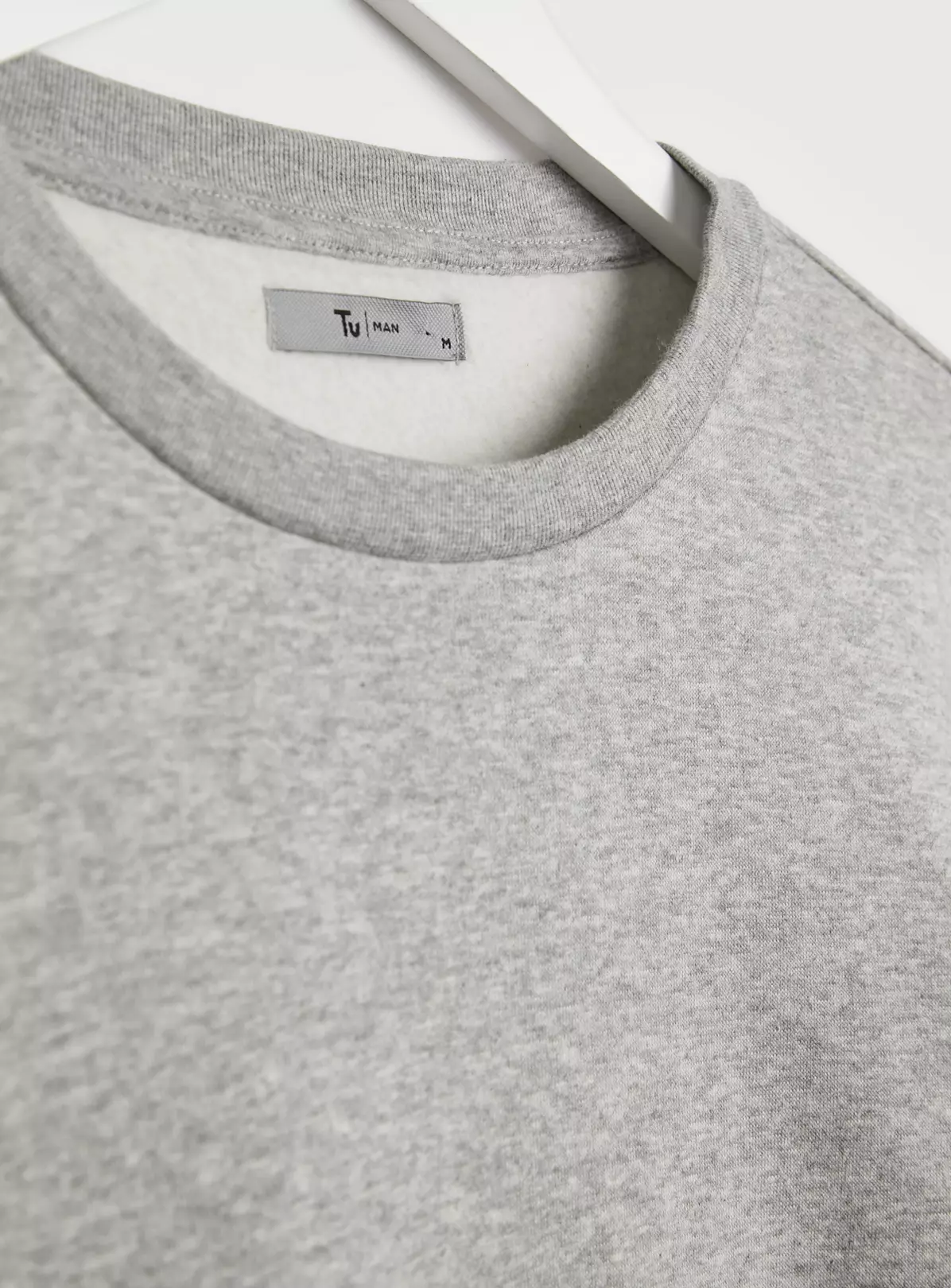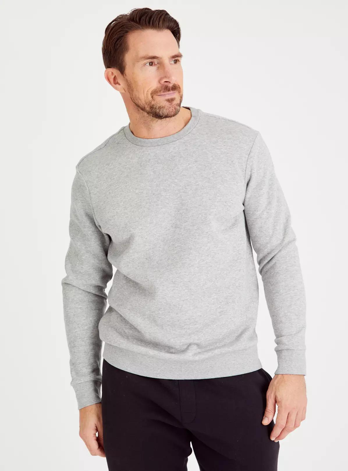 In a classic light grey marl, this cotton-rich sweatshirt is a casual wear wardrobe saver. With a cosy, brushed inner and a ribbed cuff and waist, it’s perfect for seasonal lounging and everything in between. Available in other colours.