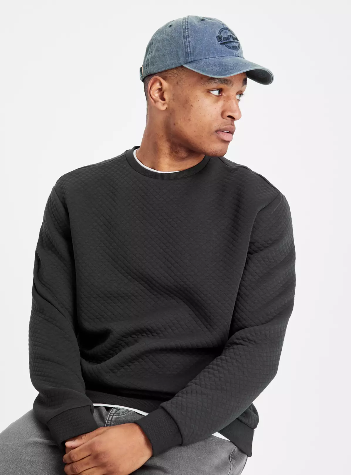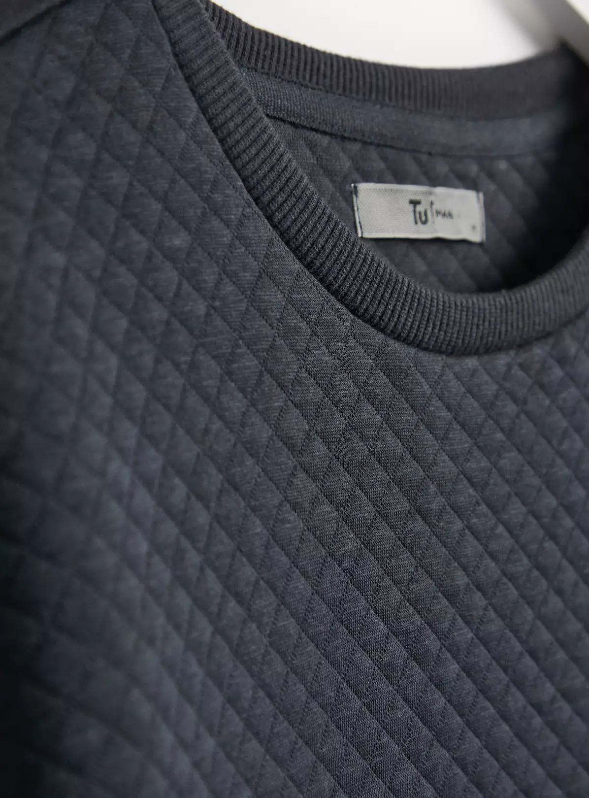 Refresh your comfy collection with our staple navy sweatshirt. In a classic crew neck, it comes in a quilted design giving it a stylish touch. Perfect for pairing with your denim jeans for a laidback look.
