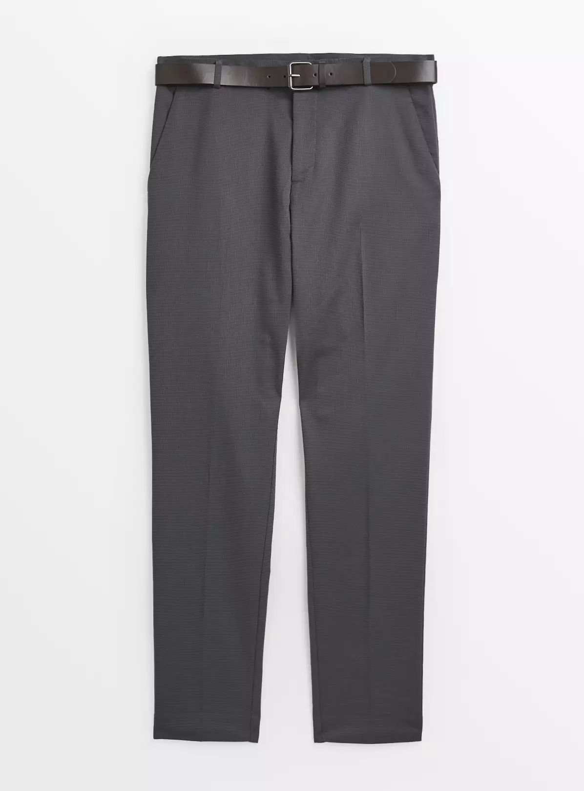 In navy, our smart trousers are an essential addition to your formalwear collection. They come with a faux leather belt, giving the outfit a classic finish. Style with a white shirt and a pair of brown loafers.