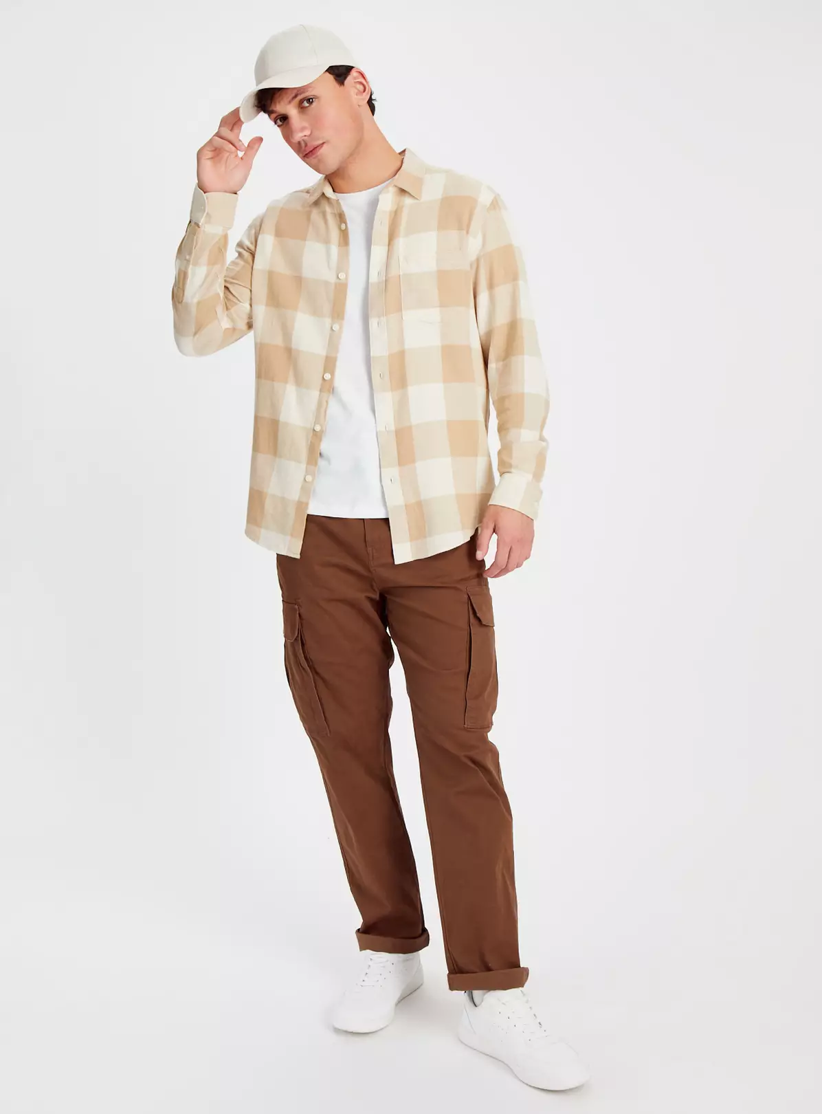 Achieve a classic look with our stone brushed check shirt. It features a buffalo check design and is crafted from a comfy cotton blend. Team it with dark wash jeans and trainers for a staple look this season.