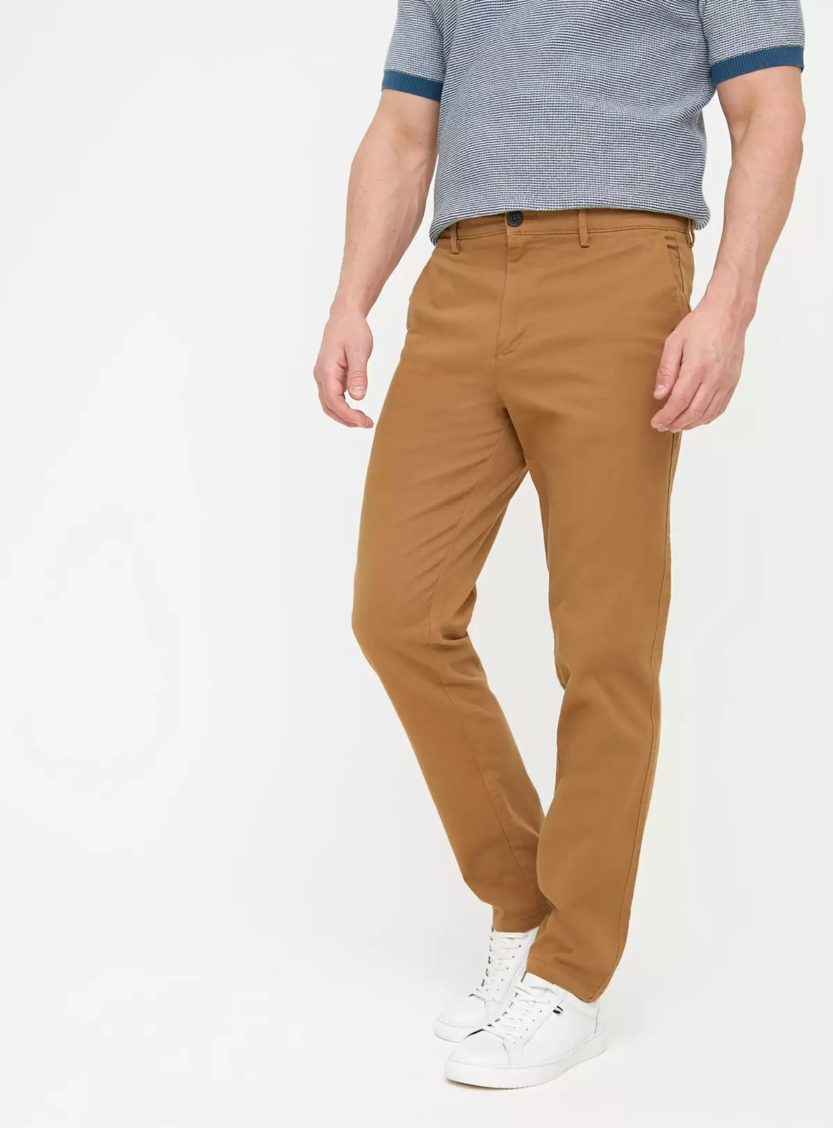 In an on-season slim fit, our tan chino trousers are a timeless addition to your wardrobe. Crafted from a comfy cotton-rich blend, they’re perfect for pairing with jumpers and loafers for a smart and stylish look.