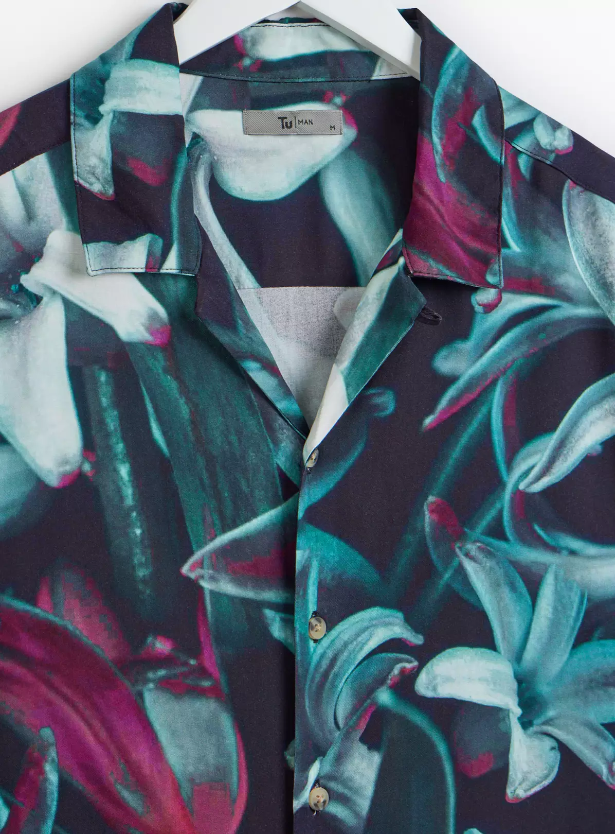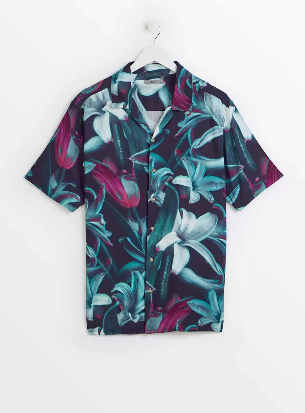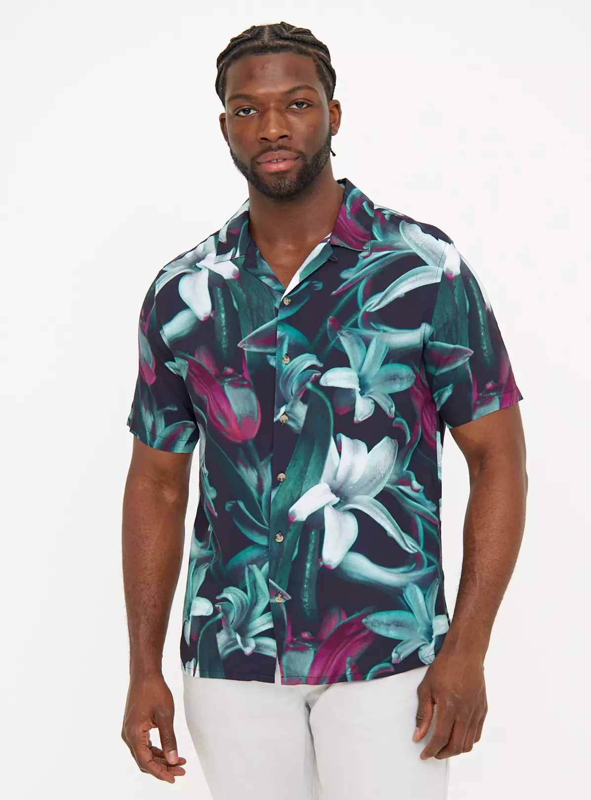 Stock up on staple shirts for your summer holidays with our teal short sleeve shirt. Elevated by an all-over lily print, it’s a must-have for your collection. Team it with denim shorts for a cool and current look.