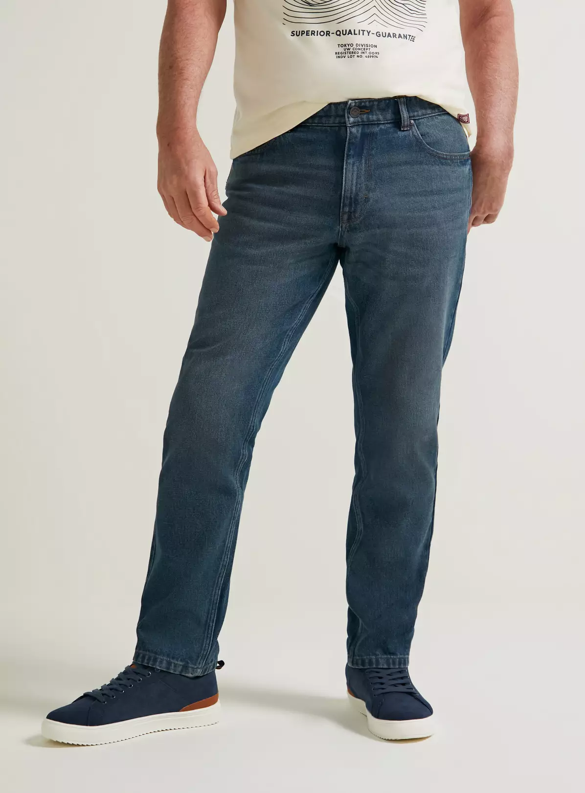 For a laidback look reach for our denim straight leg jeans. Elevated by a vintage wash, they’re a cool and current option for weekend wear. Complete the outfit by pairing them with a polo shirt and white trainers.
