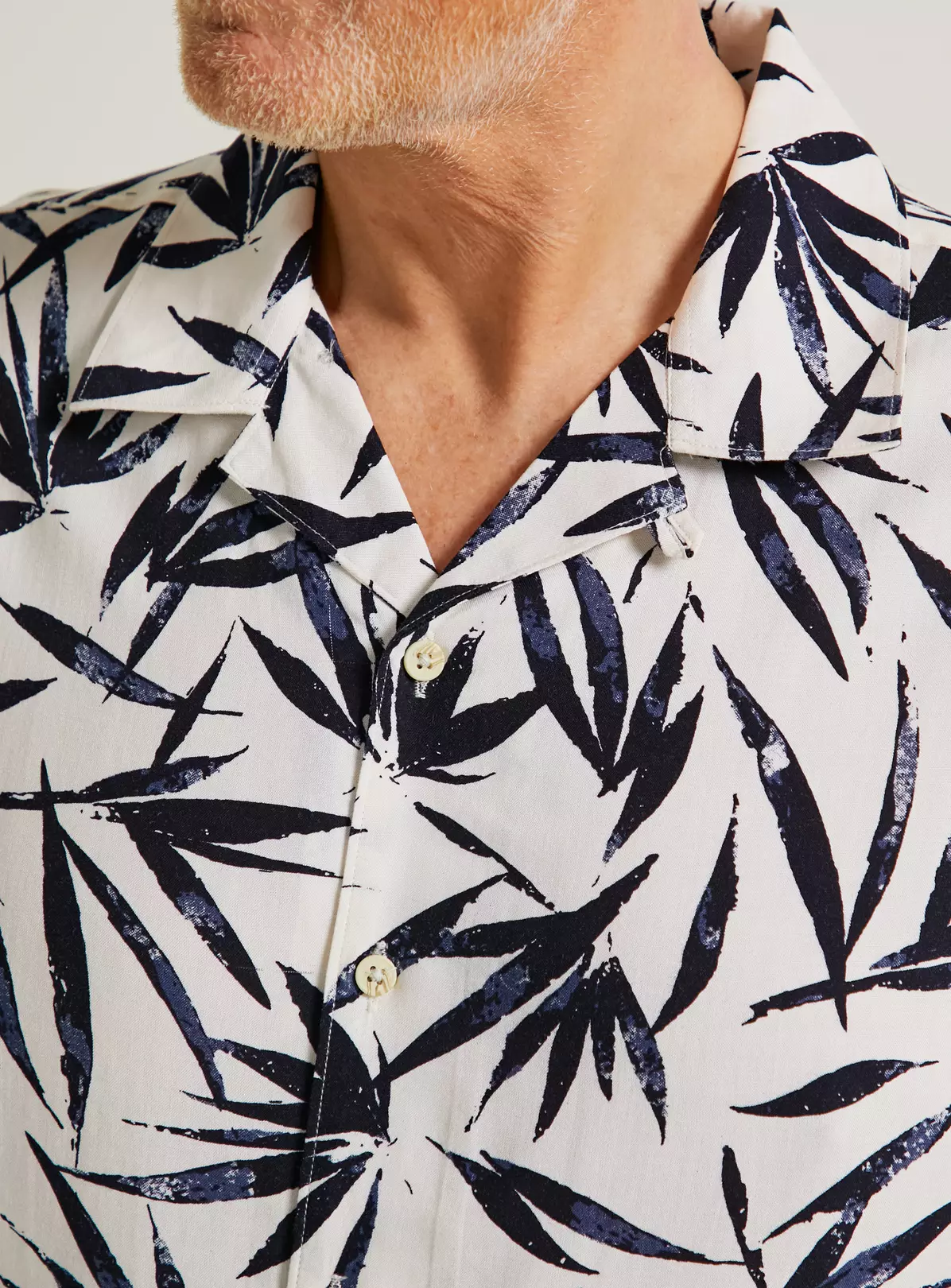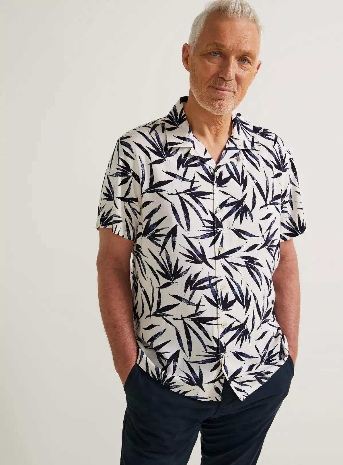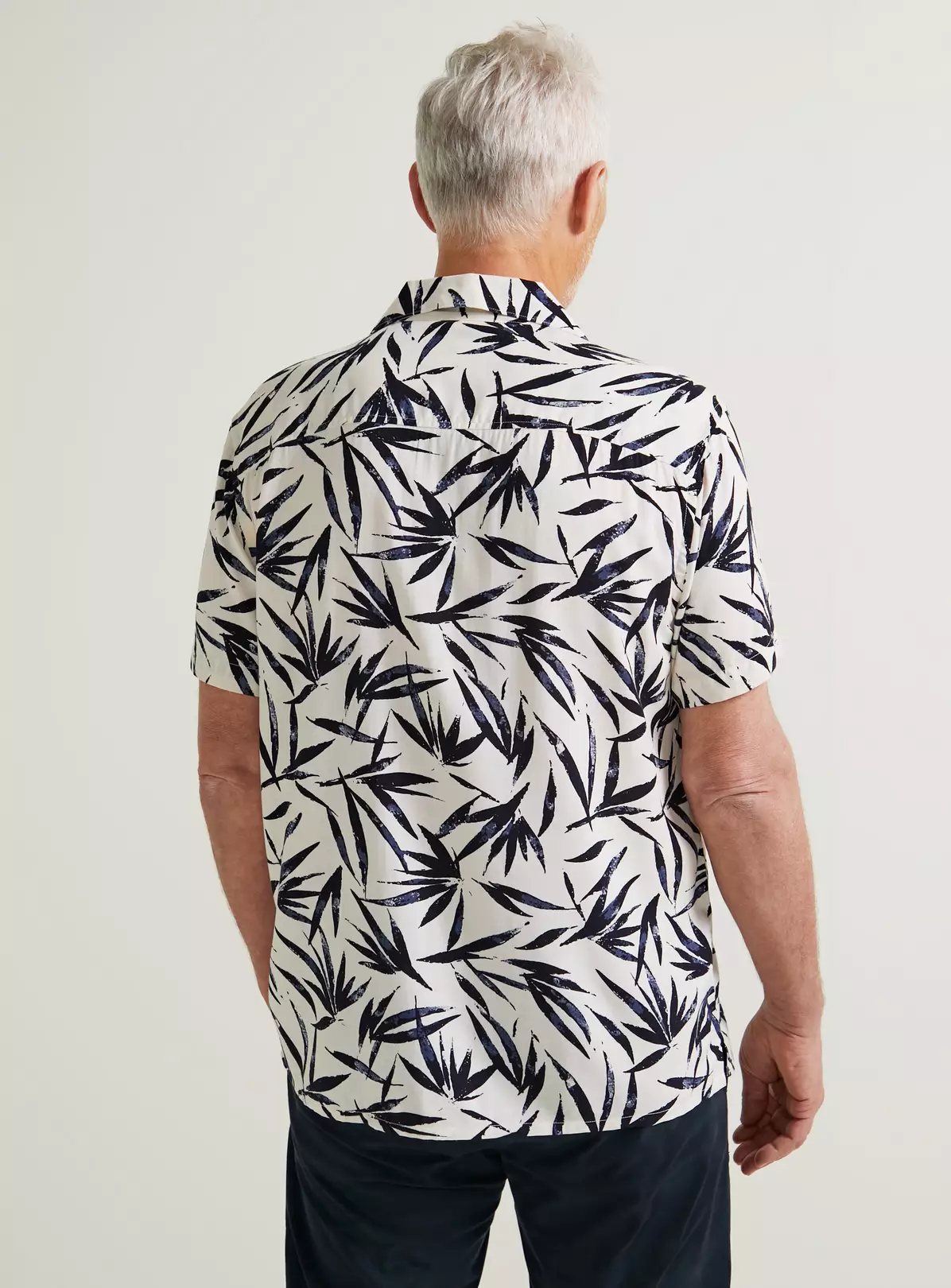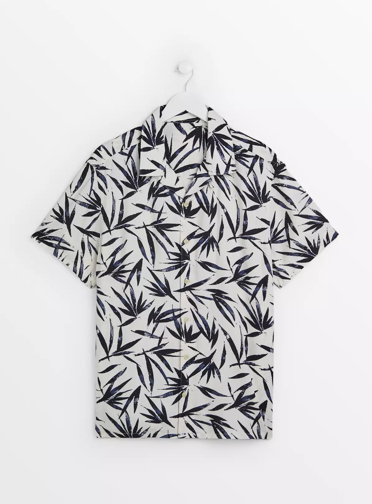 Elevate your look with our white short sleeve shirt. In a statement leaf print, it features value fastening and has a classic collar. Complete the outfit by teaming it with our straight leg denim jeans and a pair of white trainers.